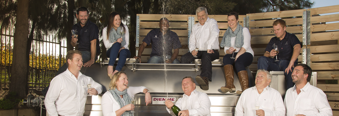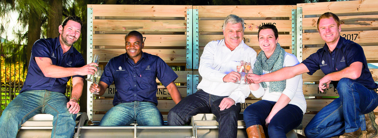 Top right: Albert de Wet (Bacchus); Anthony Gertse (Roundstone); Joan Heatlie (Winemaker Roundstone); Giuseppe Minnicucci (Owner of CMA); Chris Mullineux.